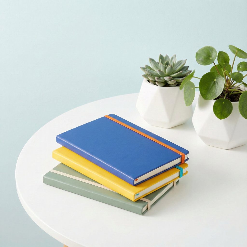 Eleva la imagen de tu marca con nuestros cuadernos de tapa dura. Papel vinil lamiando en mate, costura Smyth para apertura plana y grabado en bajo relieve personalizado. Diseñado para empresas que valoran los detalles.